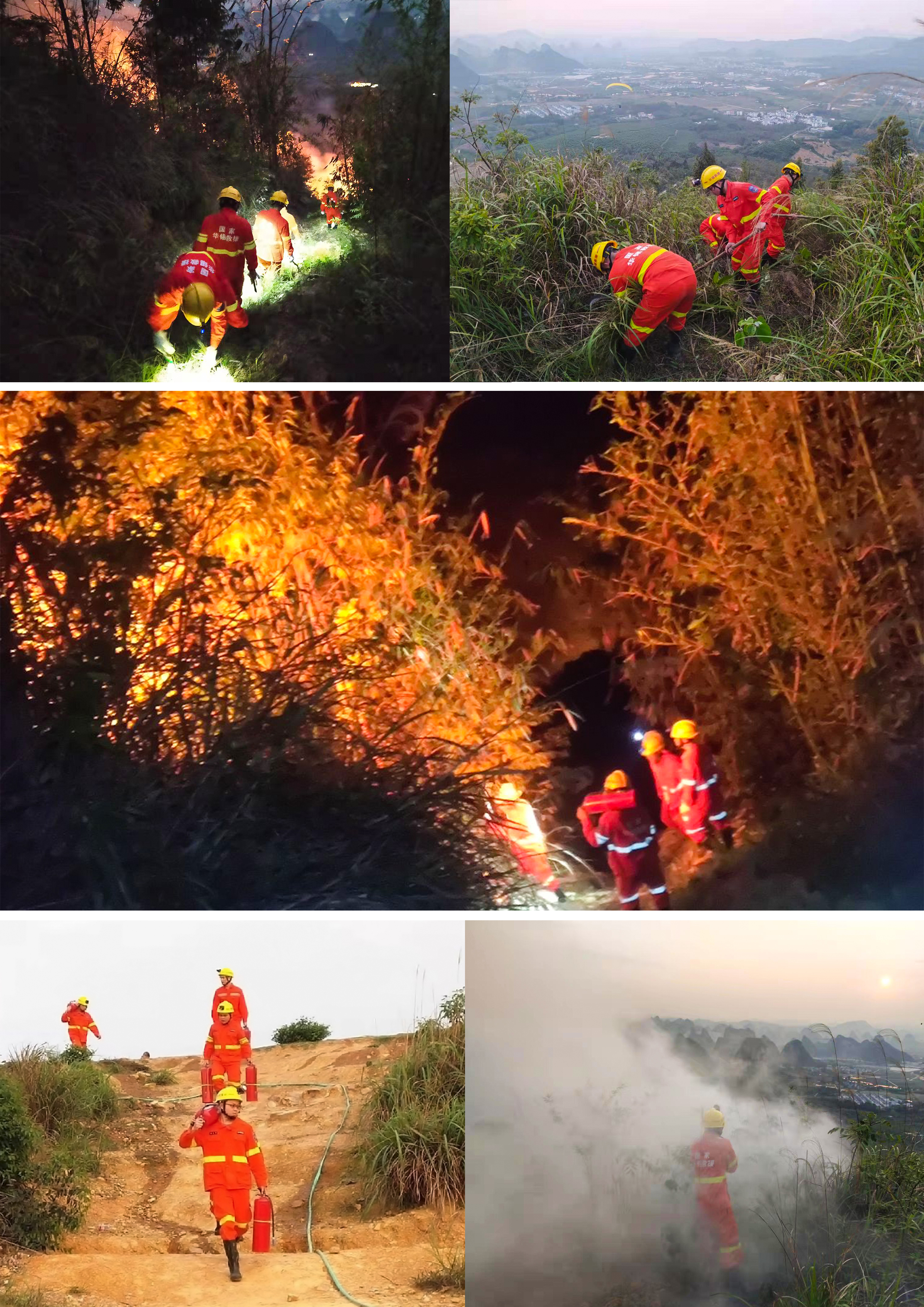 4月5日17時(shí)50分,華錫隊(duì)柳州中隊(duì)接警到柳州市太陽村鎮(zhèn)一處山上處置火情;